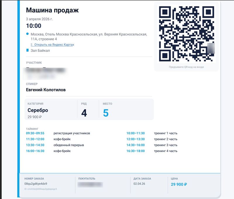 К нам обратилась компания, которая проводит десятки бизнес-мероприятий и тренингов по всей России. Задача звучала конкретно: нужна собственная билетная система для организаторов, которая заменит сторонние агрегаторы и заберёт на себя весь цикл — от оплаты до сканирования билета на входе.